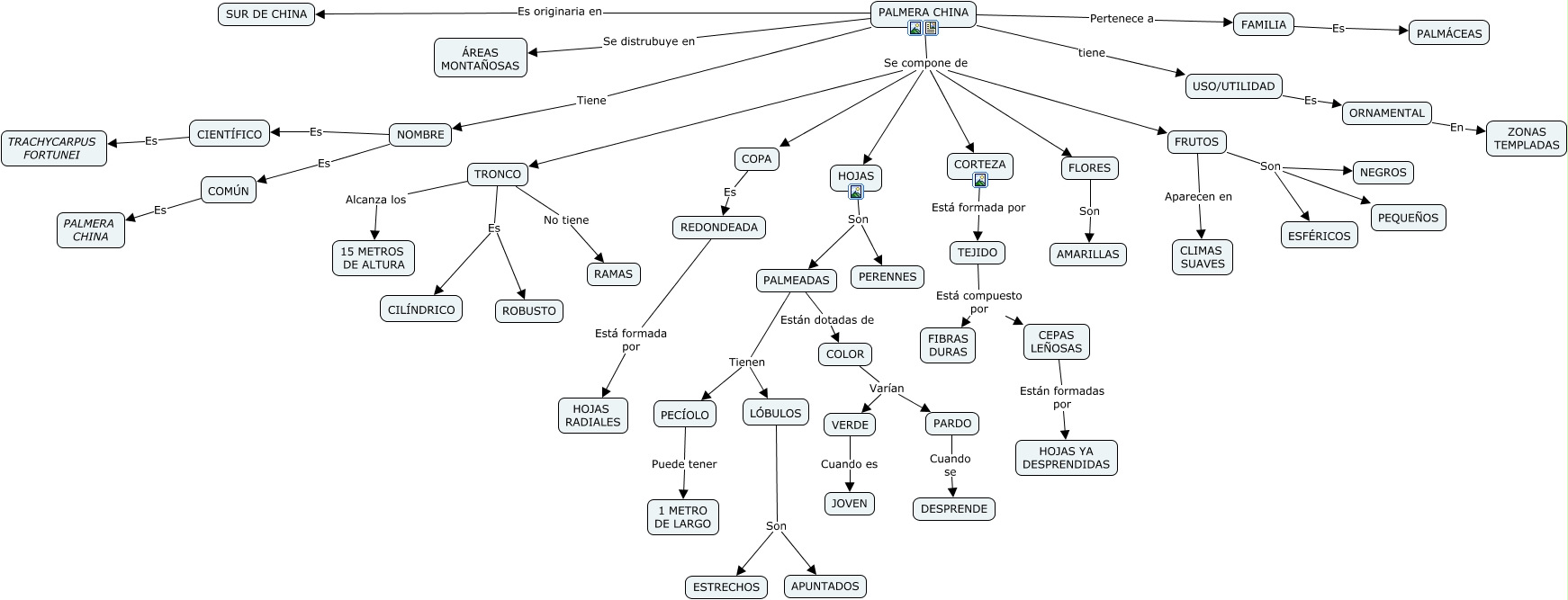 Este Cmap, tiene información relacionada con: PERENNE-PALMERA CHINA, NOMBRE Es COMÚN, FRUTOS Son ESFÉRICOS, FRUTOS Son NEGROS, PALMEADAS Están dotadas de COLOR, COLOR Varían VERDE, CIENTÍFICO Es TRACHYCARPUS FORTUNEI, TRONCO No tiene RAMAS, PALMERA CHINA Se compone de COPA, TRONCO Es CILÍNDRICO, PARDO Cuando se DESPRENDE, PALMERA CHINA Se compone de HOJAS, TEJIDO Está compuesto por CEPAS LEÑOSAS, COMÚN Es PALMERA CHINA, PALMEADAS Tienen LÓBULOS, PALMERA CHINA Tiene NOMBRE, CEPAS LEÑOSAS Están formadas por HOJAS YA DESPRENDIDAS, PALMERA CHINA Es originaria en SUR DE CHINA, PALMERA CHINA Se distrubuye en ÁREAS MONTAÑOSAS, PALMERA CHINA Pertenece a FAMILIA, COLOR Varían PARDO