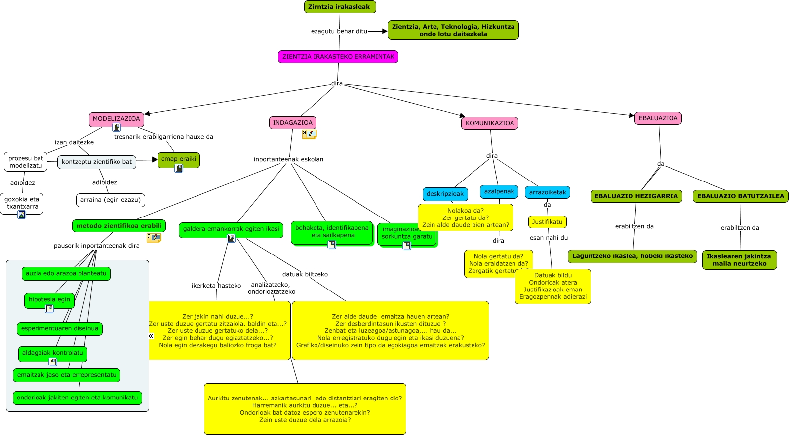 Este Cmap, tiene información relacionada con: Zientzia irakastea eskolan.cmap, MODELIZAZIOA izan daitezke prozesu bat modelizatu, kontzeptu zientifiko bat ???? cmap eraiki, KOMUNIKAZIOA dira arrazoiketak, EBALUAZIOA da EBALUAZIO HEZIGARRIA, Zirntzia irakasleak ezagutu behar ditu Zientzia, Arte, Teknologia, Hizkuntza ondo lotu daitezkela, metodo zientifikoa erabili pausorik inportanteenak dira aldagaiak kontrolatu, INDAGAZIOA inportanteenak eskolan imaginazioa eta sorkuntza garatu, KOMUNIKAZIOA dira azalpenak, metodo zientifikoa erabili pausorik inportanteenak dira esperimentuaren diseinua, MODELIZAZIOA tresnarik erabilgarriena hauxe da cmap eraiki, INDAGAZIOA inportanteenak eskolan galdera emankorrak egiten ikasi, metodo zientifikoa erabili pausorik inportanteenak dira emaitzak jaso eta errepresentatu, Justifikatu esan nahi du Datuak bildu Ondorioak atera Justifikazioak eman Eragozpennak adierazi, metodo zientifikoa erabili pausorik inportanteenak dira hipotesia egin, galdera emankorrak egiten ikasi datuak biltzeko Zer alde daude emaitza hauen artean? Zer desberdintasun ikusten dituzue ? Zenbat eta luzeagoa/astunagoa,... hau da... Nola erregistratuko dugu egin eta ikasi duzuena? Grafiko/diseinuko zein tipo da egokiagoa emaitzak erakusteko?, metodo zientifikoa erabili pausorik inportanteenak dira ondorioak jakiten egiten eta komunikatu, arrazoiketak da Justifikatu, Zirntzia irakasleak ezagutu behar ditu ZIENTZIA IRAKASTEKO ERRAMINTAK, prozesu bat modelizatu adibidez goxokia eta txantxarra, EBALUAZIO HEZIGARRIA erabiltzen da Laguntzeko ikaslea, hobeki ikasteko