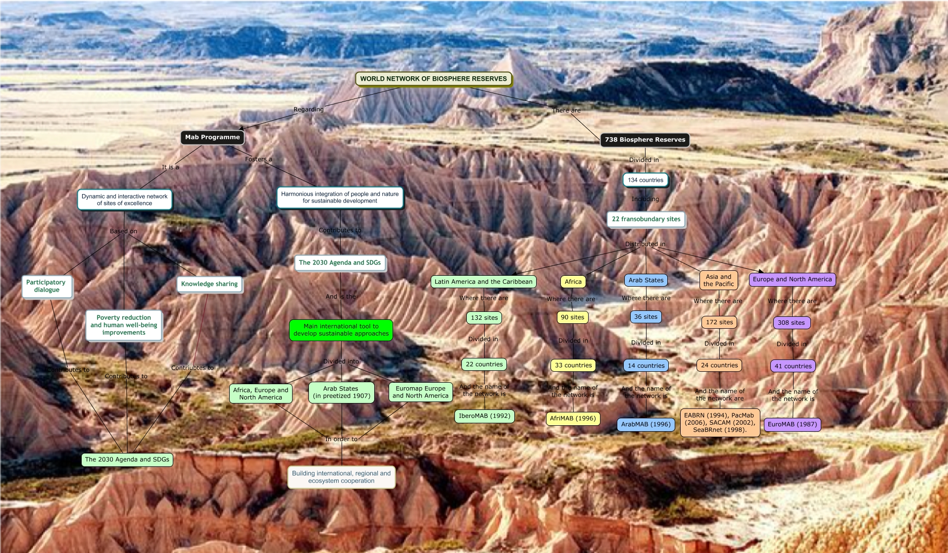 Este Cmap, tiene información relacionada con: CMAP, Knowledge sharing Contriubtes to The 2030 Agenda and SDGs, Dynamic and interactive network of sites of excellence Based on Poverty reduction and human well-being improvements, 24 countries And the name of the network are EABRN (1994), PacMab (2006), SACAM (2002), SeaBRnet (1998)., Africa Where there are 90 sites, Main international tool to develop sustainable approaches Divided into Arab States (in preetized 1907), 90 sites Divided in 33 countries, Euromap Europe and North America In order to Building international, regional and ecosystem cooperation, 22 countries And the name of the network is IberoMAB (1992), Dynamic and interactive network of sites of excellence Based on Knowledge sharing, 132 sites Divided in 22 countries, Latin America and the Caribbean Where there are 132 sites, Poverty reduction and human well-being improvements Contributes to The 2030 Agenda and SDGs, Asia and the Pacific Where there are 172 sites, 22 fransobundary sites Distributed in Arab States, 134 countries Including 22 fransobundary sites, Main international tool to develop sustainable approaches Divided into Euromap Europe and North America, 36 sites Divided in 14 countries, 33 countries And the name of the network is AfriMAB (1996), Participatory dialogue Contributes to The 2030 Agenda and SDGs, Mab Programme Fosters a Harmonious integration of people and nature for sustainable development