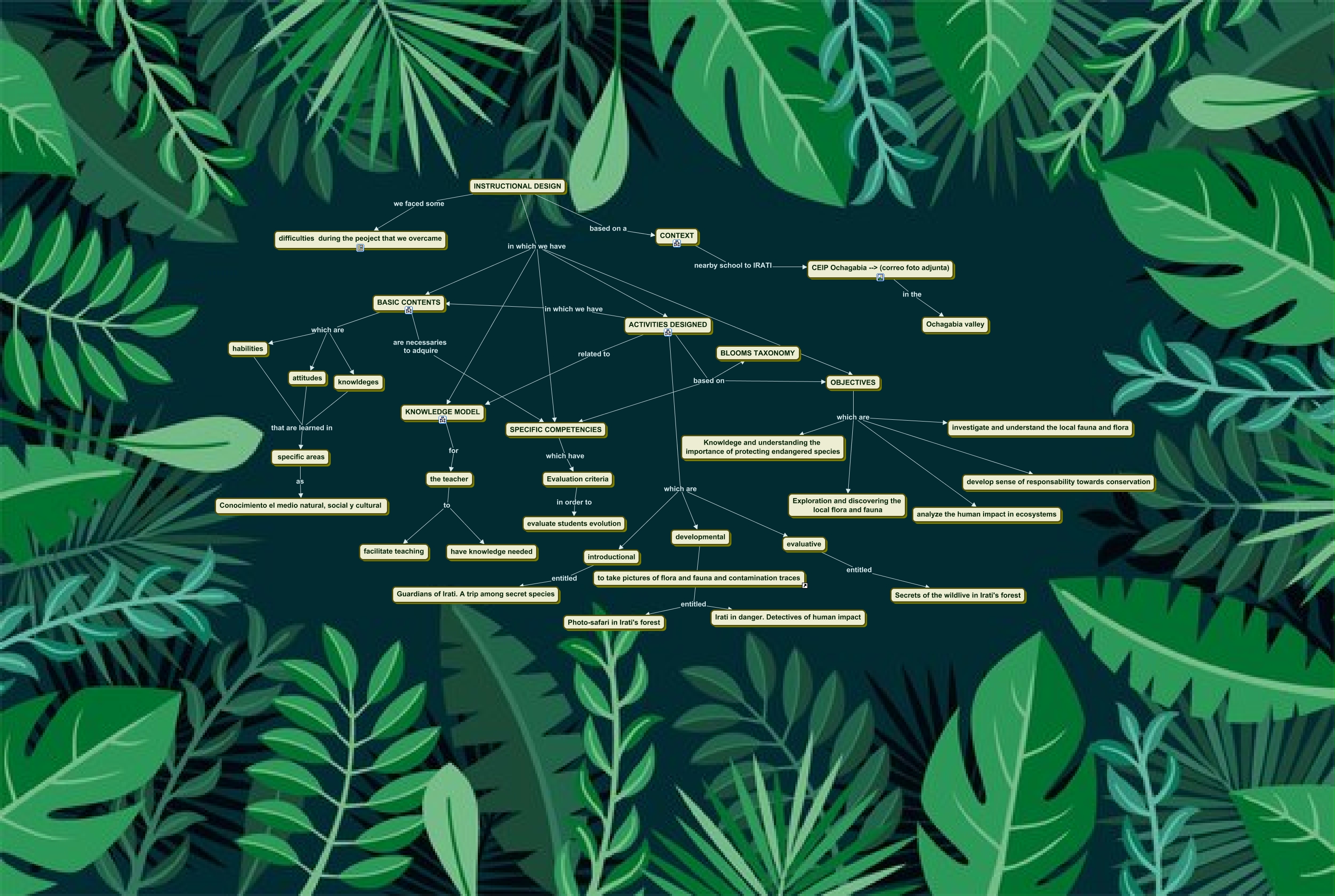 This Concept Map, created with IHMC CmapTools, has information related to: Instructional design, attitudes that are learned in specific areas, KNOWLEDGE MODEL for the teacher, OBJECTIVES which are develop sense of responsability towards conservation, habilities that are learned in specific areas, ACTIVITIES DESIGNED based on BLOOMS TAXONOMY, INSTRUCTIONAL DESIGN in which we have OBJECTIVES, INSTRUCTIONAL DESIGN we faced some difficulties during the peoject that we overcame, developmental entitled Irati in danger. Detectives of human impact, Evaluation criteria in order to evaluate students evolution, INSTRUCTIONAL DESIGN in which we have BASIC CONTENTS, the teacher to facilitate teaching, BASIC CONTENTS are necessaries to adquire SPECIFIC COMPETENCIES, CONTEXT nearby school to IRATI CEIP Ochagabia --> (correo foto adjunta), ACTIVITIES DESIGNED which are developmental, developmental entitled Photo-safari in Irati's forest, BASIC CONTENTS which are attitudes, OBJECTIVES which are analyze the human impact in ecosystems, ACTIVITIES DESIGNED which are evaluative, introductional entitled Guardians of Irati. A trip among secret species, INSTRUCTIONAL DESIGN in which we have SPECIFIC COMPETENCIES