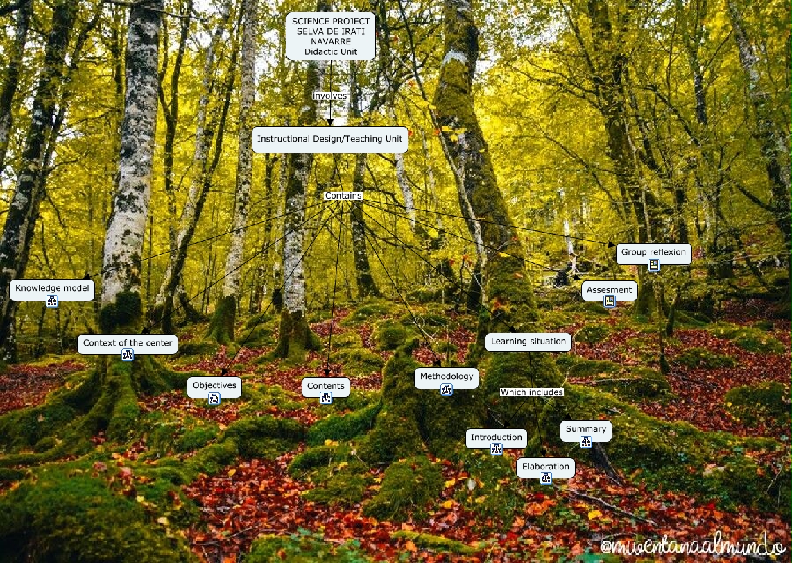 Este Cmap, tiene información relacionada con: IRATI FOREST_Science Project, Instructional Design/Teaching Unit Contains Knowledge model, Learning situation Which includes Elaboration, Instructional Design/Teaching Unit Contains Methodology, Learning situation Which includes Introduction, Instructional Design/Teaching Unit Contains Context of the center, Instructional Design/Teaching Unit Contains Contents, Instructional Design/Teaching Unit Contains Objectives, SCIENCE PROJECT SELVA DE IRATI NAVARRE Didactic Unit involves Instructional Design/Teaching Unit, Instructional Design/Teaching Unit Contains Group reflexion, Learning situation Which includes Summary, Instructional Design/Teaching Unit Contains Assesment, Instructional Design/Teaching Unit Contains Learning situation