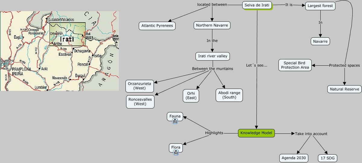 Este Cmap, tiene información relacionada con: Knowledge Model, Northern Navarre In the Irati river valley, Selva de Irati located between Atlantic Pyrenees, Knowledge Model Take into account Agenda 2030, Irati river valley Between the muntains Roncesvalles (West), Irati river valley Between the muntains Orhi (East), Irati river valley Between the muntains Abodi range (South), Largest forest In Navarre, Knowledge Model Highlights Fauna, Selva de Irati It is Largest forest, Irati river valley Between the muntains Orzanzurieta (West), Largest forest Protected spaces Natural Reserve, Selva de Irati located between Northern Navarre, Selva de Irati Let´s see... Knowledge Model, Knowledge Model Take into account 17 SDG, Largest forest Protected spaces Special Bird Protection Area, Knowledge Model Highlights Flora