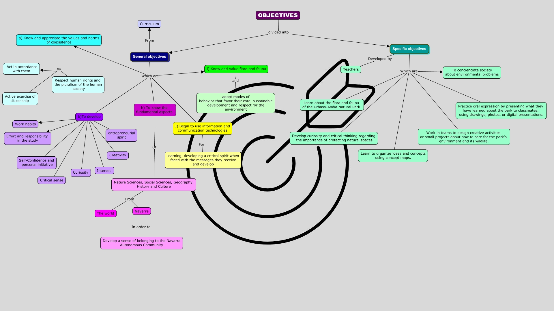 Este Cmap, tiene información relacionada con: Objectives, Specific objectives Which are Work in teams to design creative activities or small projects about how to care for the park’s environment and its wildlife., General objectives Which are a) Know and appreciate the values and norms of coexistence, General objectives From Curriculum, a) Know and appreciate the values and norms of coexistence by Act in accordance with them, Specific objectives Which are Practice oral expression by presenting what they have learned about the park to classmates, using drawings, photos, or digital presentations., Specific objectives Which are To concienciate society about environmental problems, b)To develop ???? Effort and responsibility in the study, I) Begin to use information and communication technologies For learning, developing a critical spirit when faced with the messages they receive and develop, b)To develop ???? Interest, General objectives Which are I) Begin to use information and communication technologies, Specific objectives Which are Develop curiosity and critical thinking regarding the importance of protecting natural spaces, General objectives Which are h) To know the fundamental aspects, Specific objectives Which are Learn to organize ideas and concepts using concept maps., b)To develop ???? Self-Confidence and personal initiative, b)To develop ???? Work habits, b)To develop ???? Creativity, Nature Sciences, Social Sciences, Geography, History and Culture From Navarre, a) Know and appreciate the values and norms of coexistence by Active exercise of citizenship, a) Know and appreciate the values and norms of coexistence by Respect human rights and the pluralism of the human society, h) To know the fundamental aspects Of Nature Sciences, Social Sciences, Geography, History and Culture