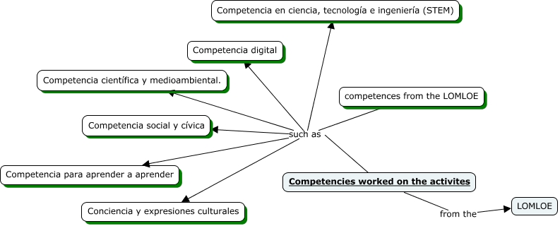This Concept Map, created with IHMC CmapTools, has information related to: Competencies, competences from the LOMLOE such as Competencia social y cívica, Competencies worked on the activites such as Competencia social y cívica, competences from the LOMLOE such as Competencia para aprender a aprender, Competencies worked on the activites such as Conciencia y expresiones culturales, competences from the LOMLOE such as Conciencia y expresiones culturales, Competencies worked on the activites such as Competencia en ciencia, tecnología e ingeniería (STEM), Competencies worked on the activites such as Competencia para aprender a aprender, Competencies worked on the activites such as Competencia digital, competences from the LOMLOE such as Competencia científica y medioambiental., Competencies worked on the activites such as Competencia científica y medioambiental., Competencies worked on the activites from the LOMLOE, competences from the LOMLOE such as Competencia digital, competences from the LOMLOE such as Competencia en ciencia, tecnología e ingeniería (STEM)