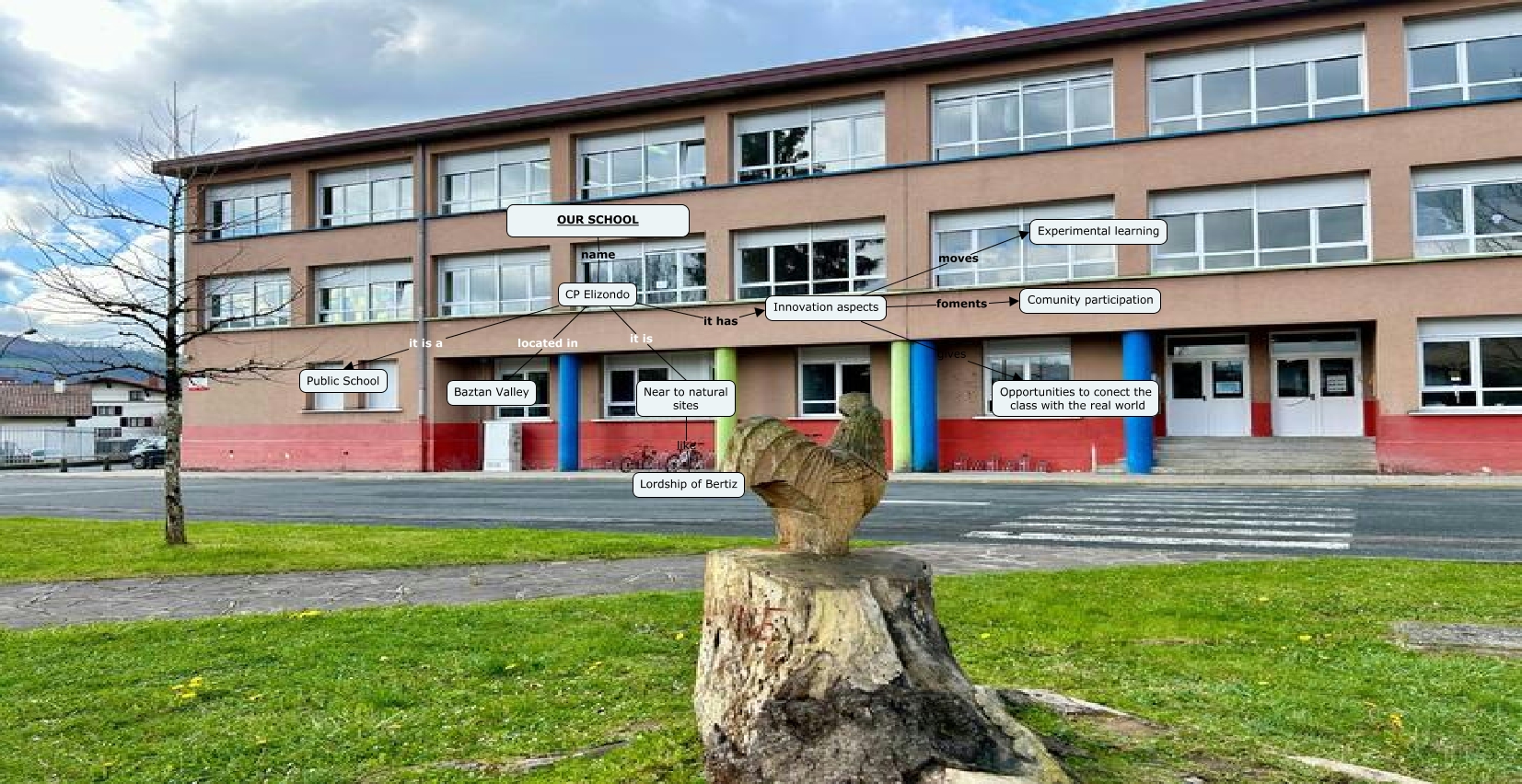 Este Cmap, tiene información relacionada con: Our School, Innovation aspects gives Opportunities to conect the class with the real world, OUR SCHOOL name CP Elizondo, Innovation aspects moves Experimental learning, CP Elizondo it has Innovation aspects, Near to natural sites like Lordship of Bertiz, CP Elizondo located in Baztan Valley, CP Elizondo it is a Public School, CP Elizondo it is Near to natural sites, Innovation aspects foments Comunity participation