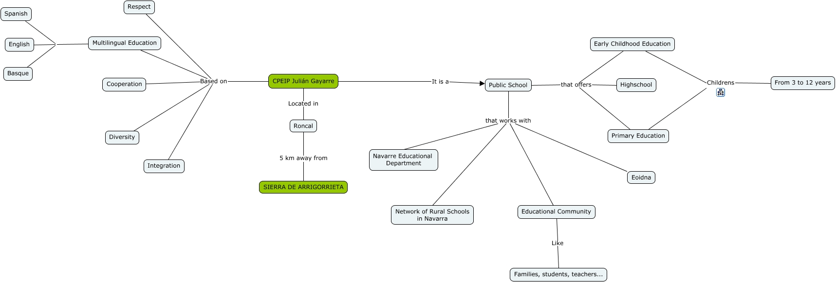 Este Cmap, tiene información relacionada con: context, Primary Education Childrens From 3 to 12 years, Public School that offers Primary Education, Multilingual Education Basque, CPEIP Julián Gayarre Based on Diversity, Public School that works with Network of Rural Schools in Navarra, Multilingual Education English, Educational Community Like Families, students, teachers..., Public School that works with Educational Community, Public School that works with Eoidna, CPEIP Julián Gayarre Based on Cooperation, CPEIP Julián Gayarre Based on Respect, CPEIP Julián Gayarre Based on Integration, CPEIP Julián Gayarre Located in Roncal, Multilingual Education Spanish, CPEIP Julián Gayarre Based on Multilingual Education, Public School that works with Navarre Educational Department, Public School that offers Highschool, Early Childhood Education Childrens From 3 to 12 years, Roncal 5 km away from SIERRA DE ARRIGORRIETA, CPEIP Julián Gayarre It is a Public School